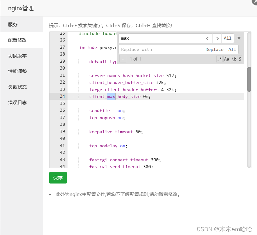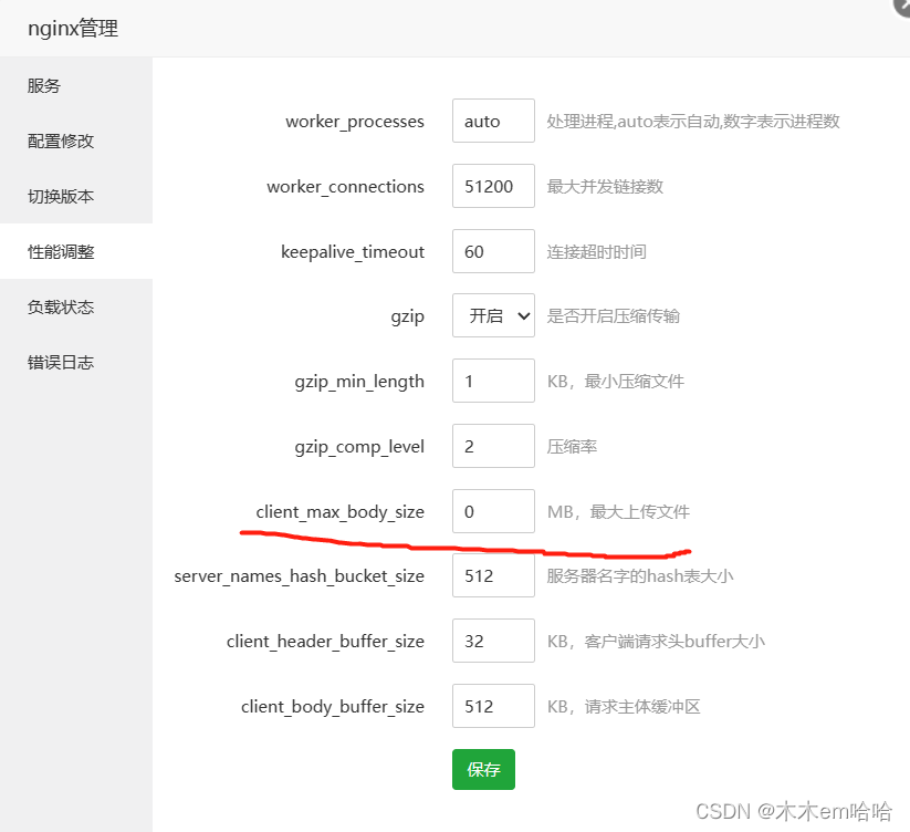 client_max_body_size这一行改为0m(也就是无限制)
