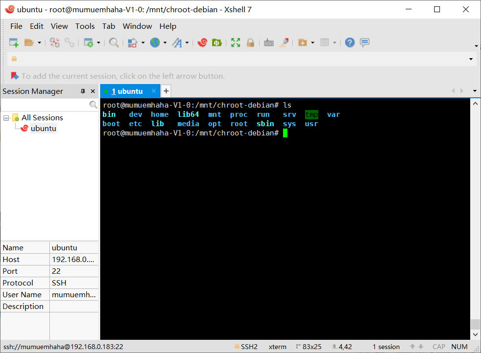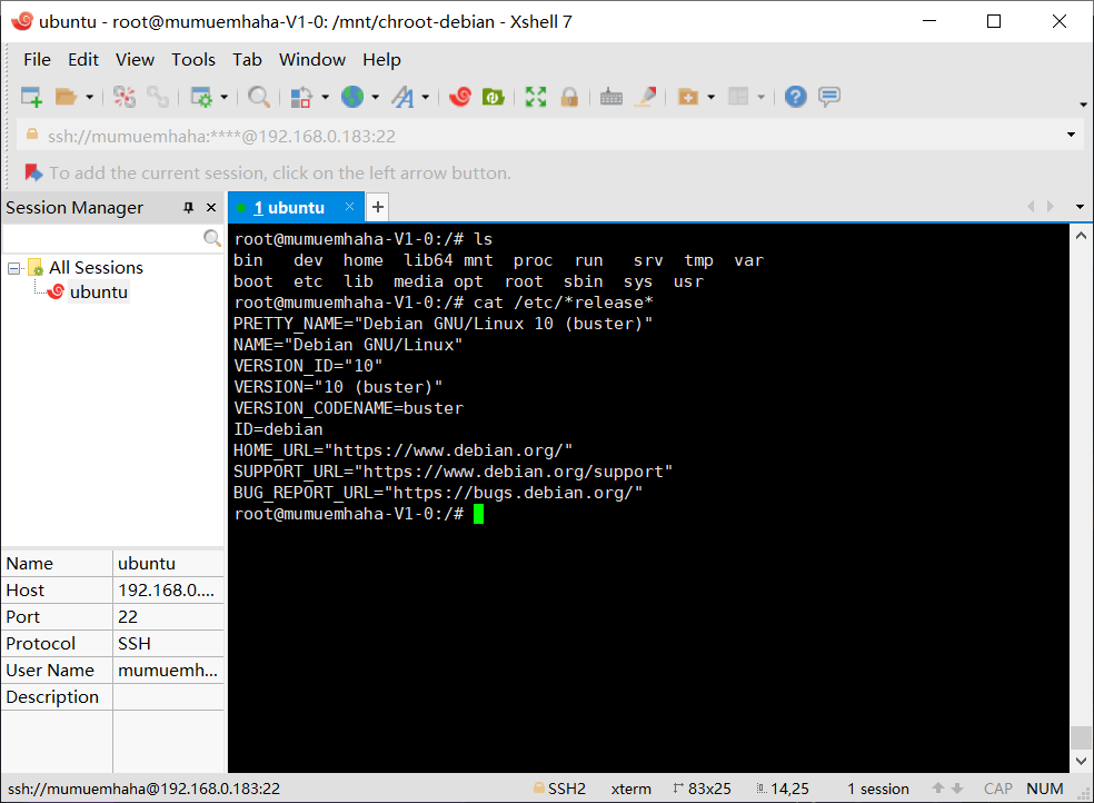 可以看到我们以及借用chroot虚拟出来了一个debian环境(主要是获取其中的环境以及文件)